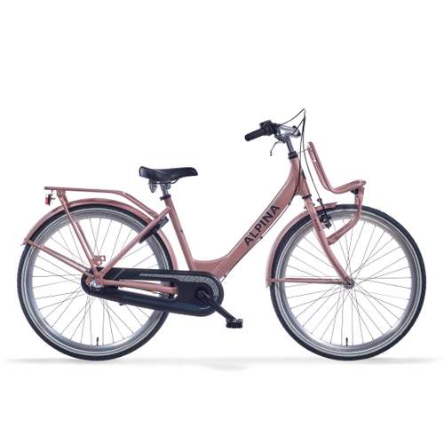 EigenschappenAlpina fiets Clubb Meisjes, 24inch. Kleur: Desert Pink Matt. Uitgerust met achter een Shimano Nexus remnaaf met 3 versnellingen en een V-brake voor, aluminium frame, inclusief voordrager. Kleurnummer: PMS 7606 Matt.